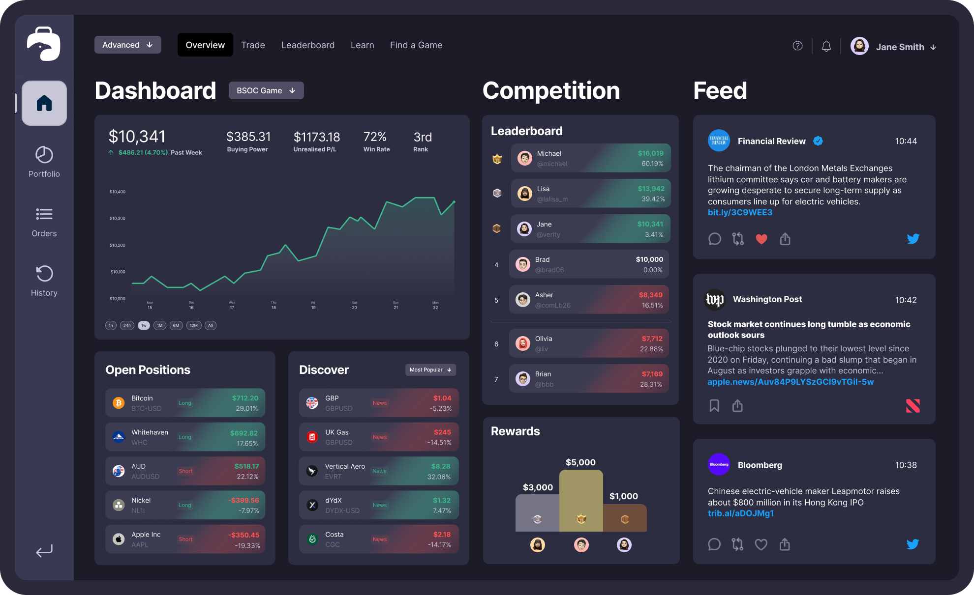 With two interfaces to suit all levels of experience, the ability for any player to create their own competition, a live feed from leading media outlets, and best-in-class learning resources, we're blurring the boundary between fiction and reality.